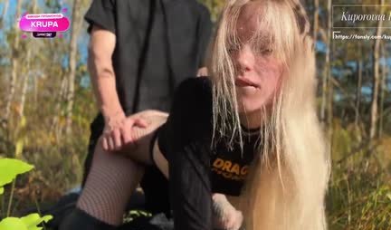 Русская красавица Купорова Крупа еще тот романтик и по жизни обожает гулять по осеннему лесу, даже если там нет грибов и прочих ягод. Зато сегодня там есть парень, перед которым можно пощеголять аппетитной попкой или даже оголить перед, закрыв его колготками и оставив открытой одну из сладких дырок. Ну и если смотреть в целом, то свидание явно удалось, потому что у девушки полный рот спермы, но ей этого мало и она хочет большего!...